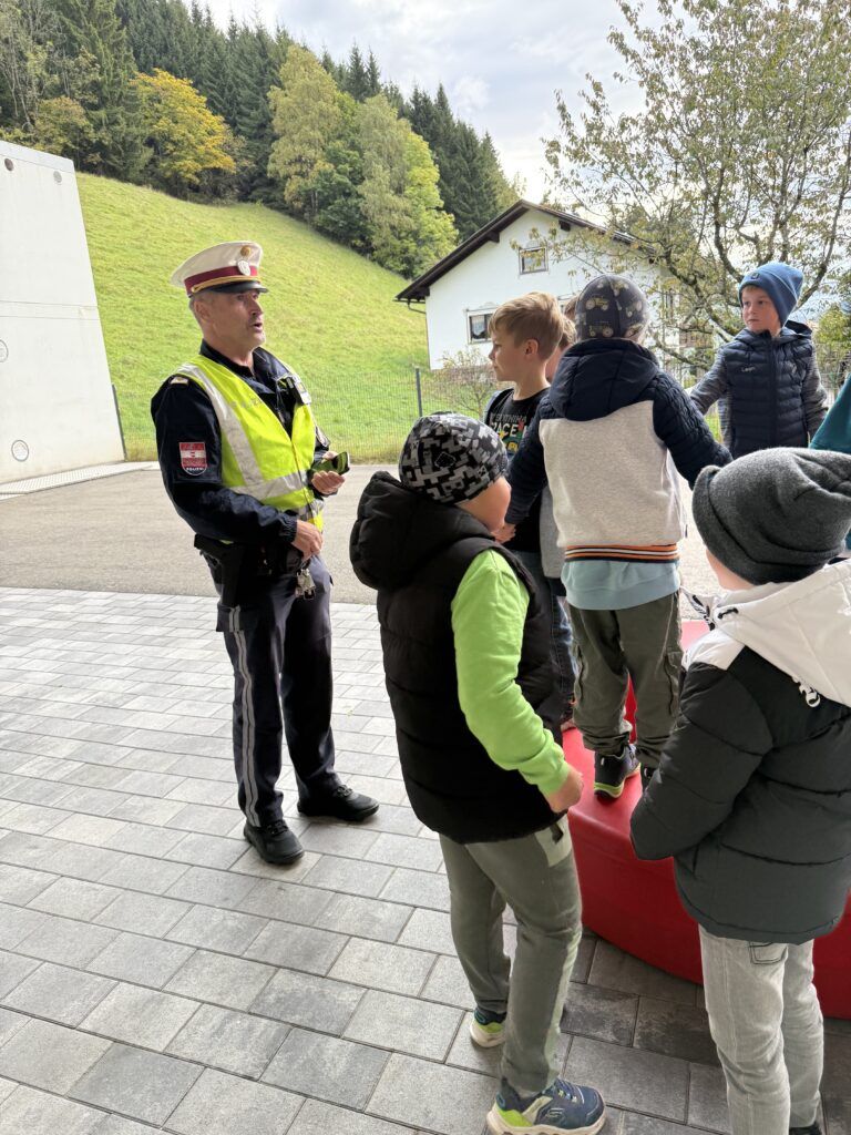 Am 9. Oktober besuchte ein Polizist der Polizeiinspektion Seckau unsere Schule und gestaltete gemeinsam mit den Kindern der 1. und 2. Klasse eine spannende und lehrreiche Einheit zur Verkehrserziehung. Er erklärte kindgerecht, wie man sicher eine Straße überquert und auf welche Gefahren im Straßenverkehr besonders zu achten ist. Die Schülerinnen und Schüler durften das richtige Verhalten auch praktisch üben. Zum Abschluss erhielten alle Kinder kleine Geschenke – reflektierende Materialien, die für gute Sichtbarkeit bei Dämmerung und Dunkelheit sorgen. Ein herzliches Dankeschön an die Polizei für diesen wichtigen Beitrag zur Sicherheit unserer Kinder!